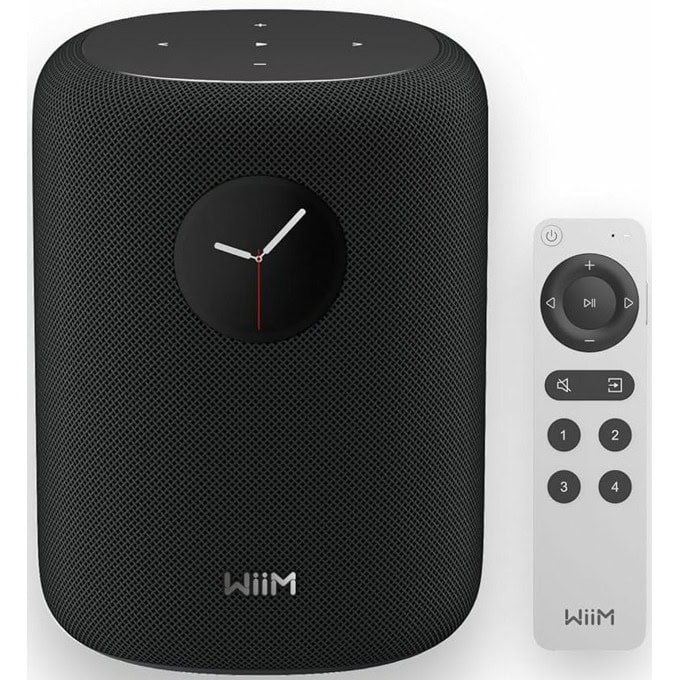 WiiM Voice Remote 2 Lite (included)— one‑tap playback/volume/skip, push‑to‑talk voice, preset buttons