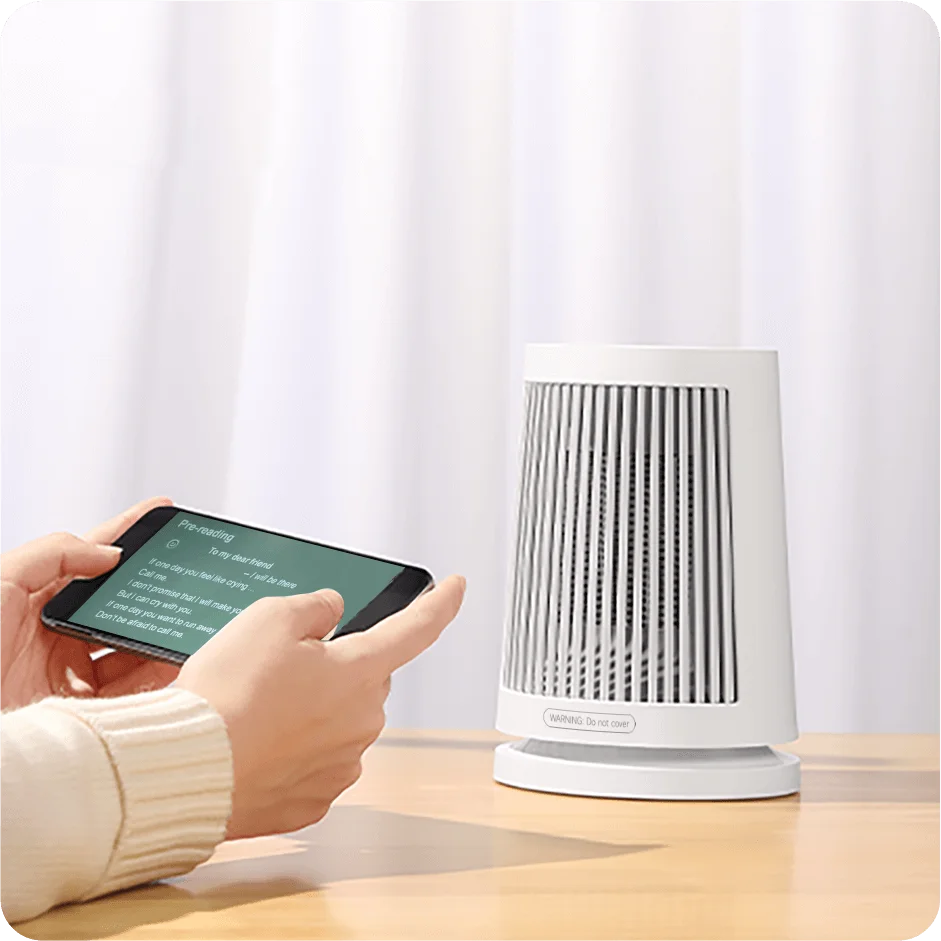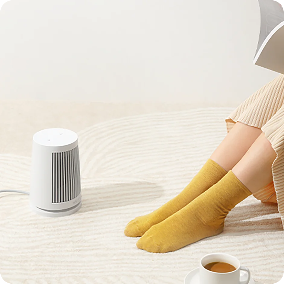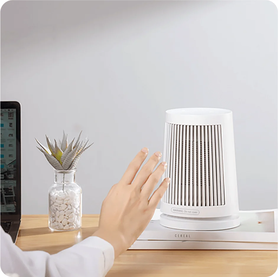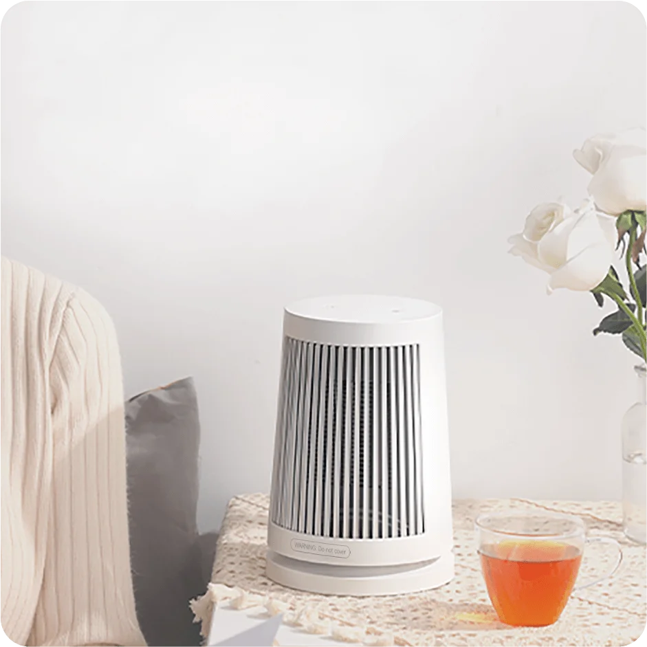 PTC instant heating technology Fast, safe, and reliable heating | Wide-angle breeze 45° oscillating airflow | Compact design Stylish and space-efficient |