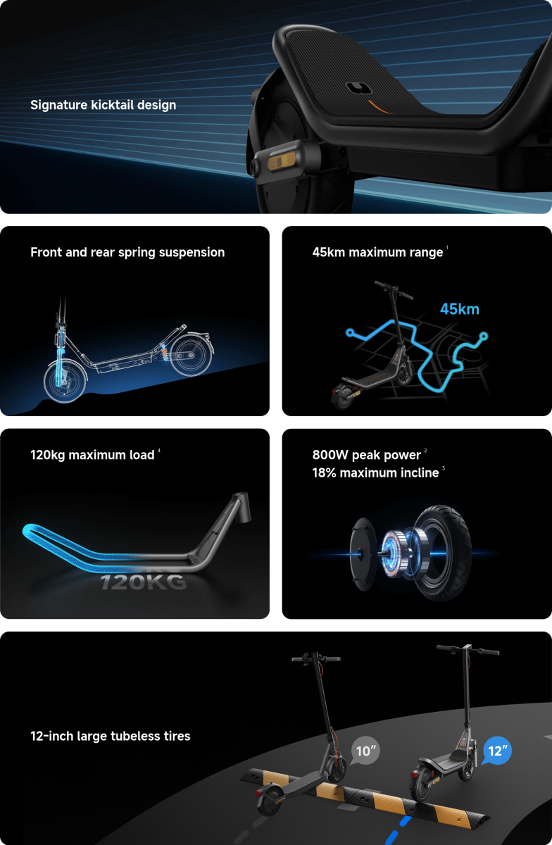 | Speed Modes | Pedestrian: 6 km/h; Standard: 15 km/h; Sport: 25 km/h |