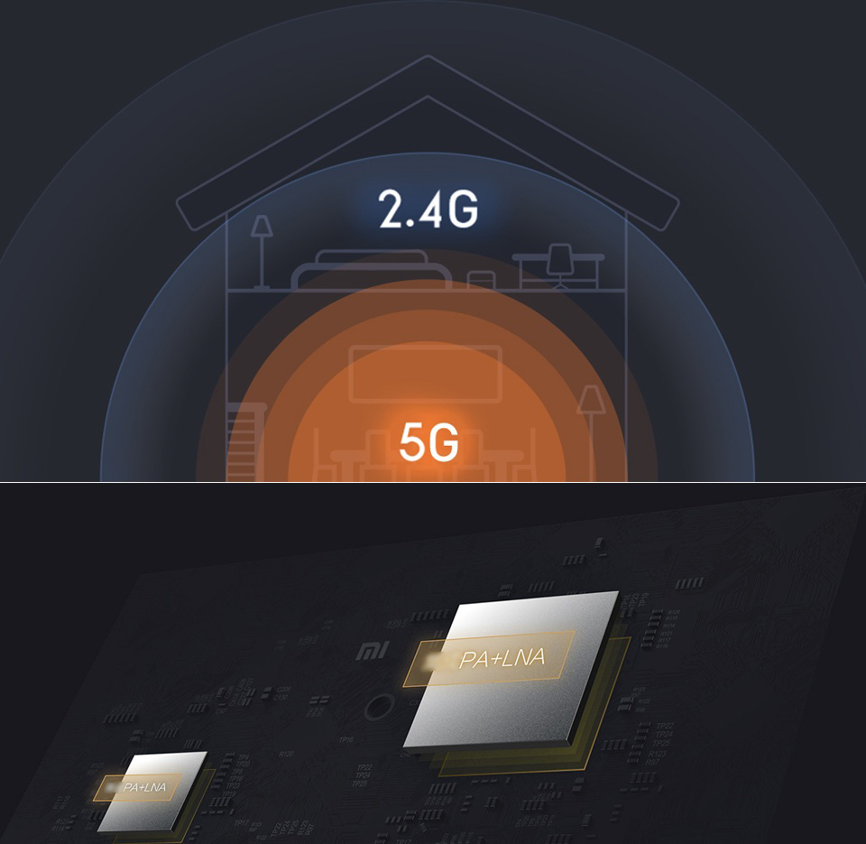 Двулентовият рутер Mi Wi-Fi 4A работи добре, като интегрира безжичния Wi-Fi чип с усилвател на мощност PA и усилвател с нисък шум LNA, удължавайки разстоянието на предаване на сигнала и избягвайки мрежови смущения.