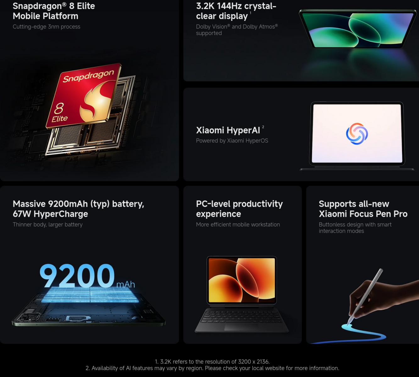 Xiaomi Pad 8 Pro is powered by the Snapdragon® 8 Elite Mobile Platform. Built on TSMC’s 2nd-Gen 3nm process and featuring Qualcomm’s dual prime-core architecture, it delivers a dramatic performance leap for PC-level capabilities—effortlessly handling complex multitasking, massive data and graphically intensive games.