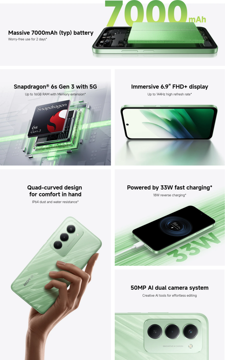 Powered by advanced silicon-carbon anode technology, REDMI 15 5G delivers an ultra-long battery life experience like never before.