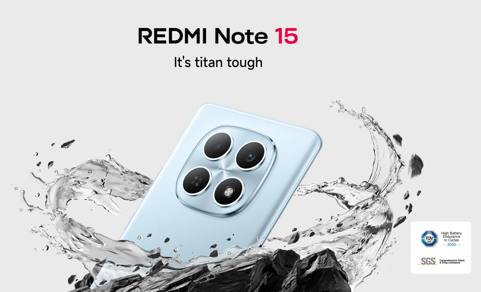 REDMI Note 15 adopts high-durability glass on the front for improved drop performance, and can withstand 1.8m face-down drops onto marble, giving you peace of mind in everyday use.