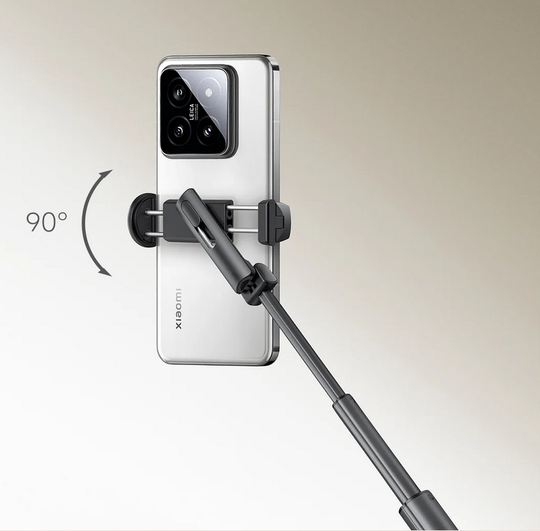 The phone clip rotates 90° left and right and features an adjustable non-slip clamp to fit different devices. Switch between portrait and landscape modes with ease.