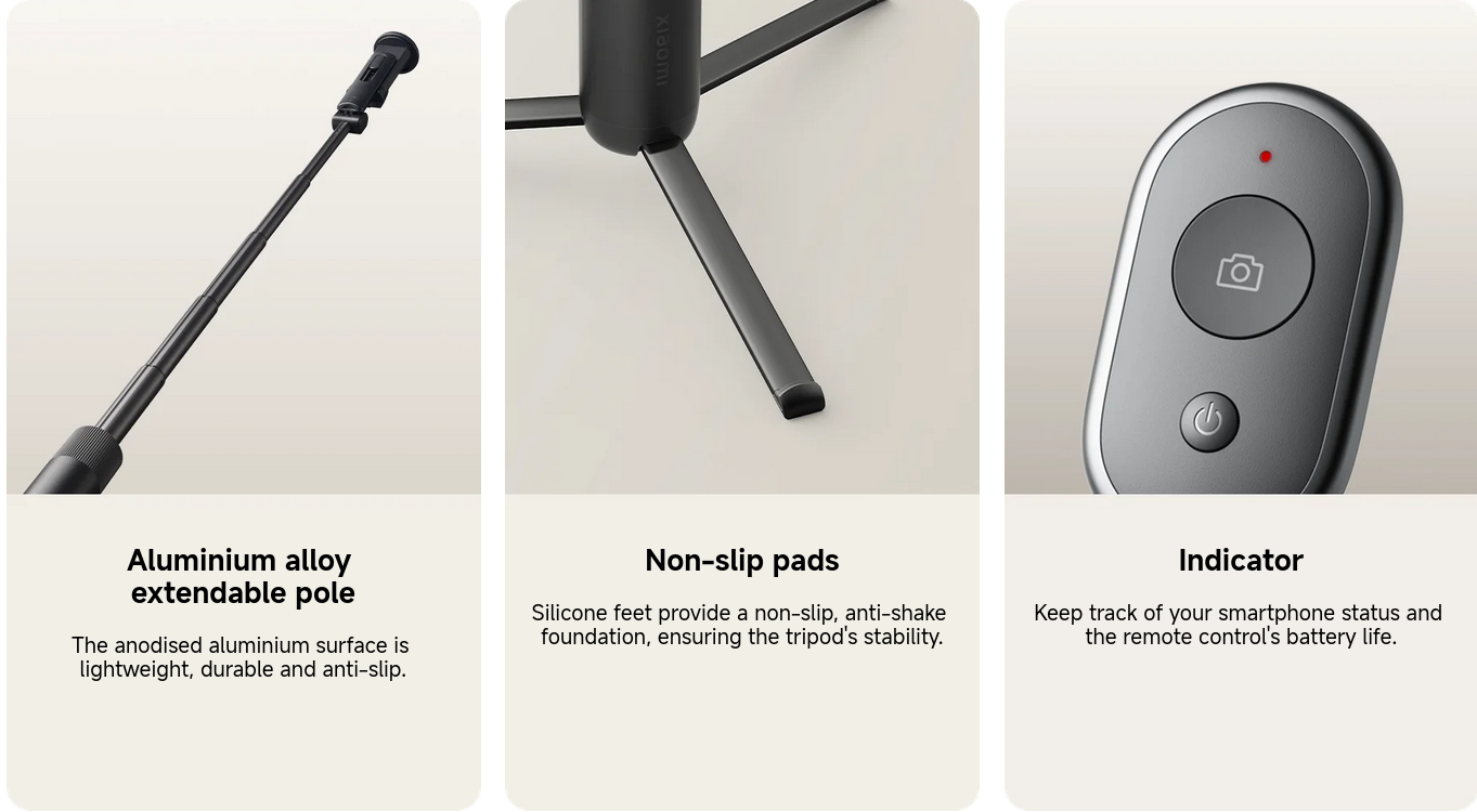 With an extended length of approximately 20.47 inches*, the telescopic pole features a hidden phone clamp and built-in tripod, integrating a selfie stick, live streaming handle and phone holder for endless creative possibilities.