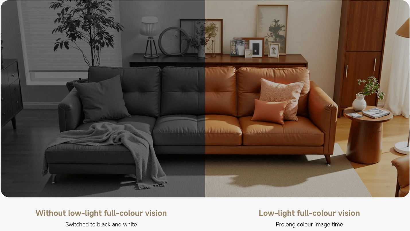 With the assistance of the built-in high-sensitivity image sensor, the camera can better adapt to low-light environments and retain colour images for a long period of time.