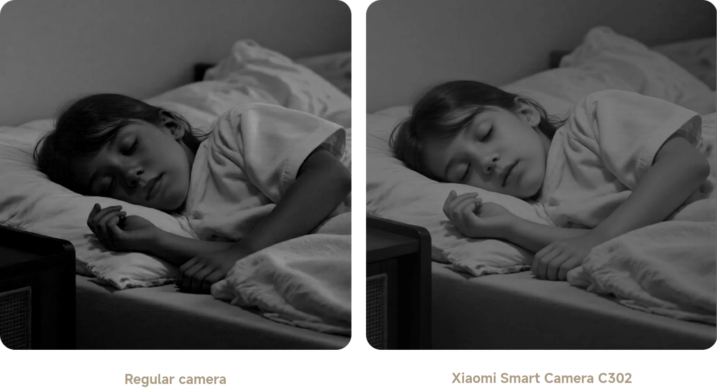 The camera has six built-in infrared illuminators and can capture clear images even on dark nights without producing red light or disturbing your family's sleep.