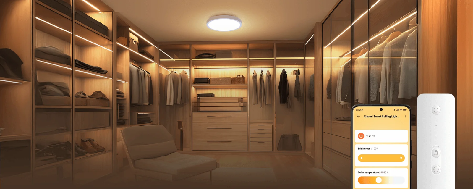 The Xiaomi Smart Ceiling Light D Series is equipped with a built-in Wi-Fi module that supports smart connections with Xiaomi Home app.
