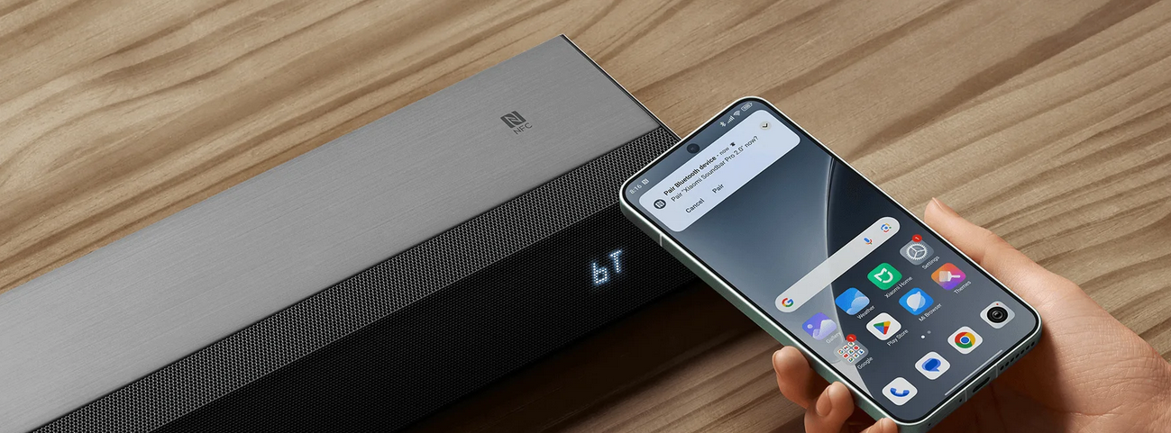Hold your smartphone's NFC area near the soundbar's NFC zone for instant Bluetooth pairing and seamless music playback.