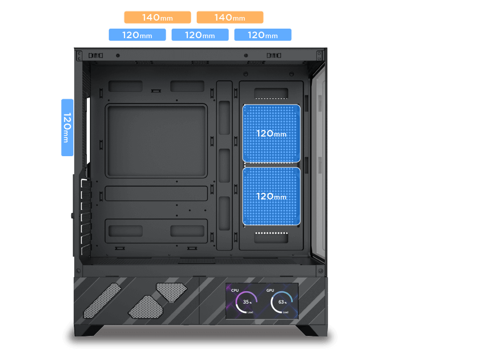 Side: 120mm x2 (E-ATX Wide ≤ 272mm)