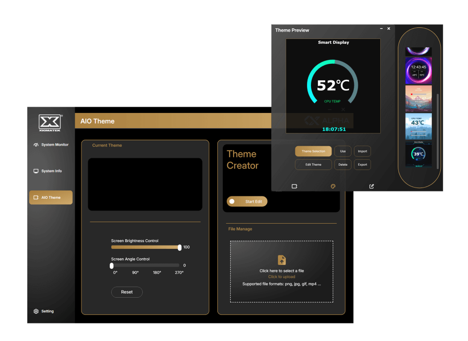 ![]() | Multiple Themes Included Adjustable Screen Angle and Brightness, with Themes Offering Distinct Visuals and Layouts for Hardware Monitoring |