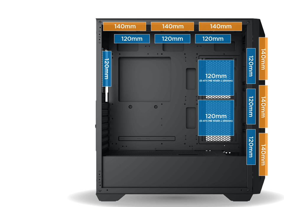 MB: 120mm x2 (EATX MB Width ≤280mm)