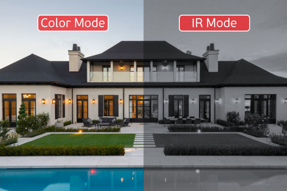 ![]() | Цветен нощен режим - Color Mode 2 лампи с общо 18 LED светодиода осветяват наблюдавания периметър и позволяват нощно наблюдение в цветове. Когато камерата работи в автоматичен режим на нощно наблюдение, LED лампите се активират само при засичане на движение в обсега на камерата, подпомагайки заснемането на по-ясна и детайлна картина. Приложението дава възможност за ръчно активиране на Цветен режим на наблюдение, при който LED лампите ще работят постоянно. 8 IR светодиода работят в инфрачервения IR спектър, осигурявайки изключително детайлна черно/бяла картина. |