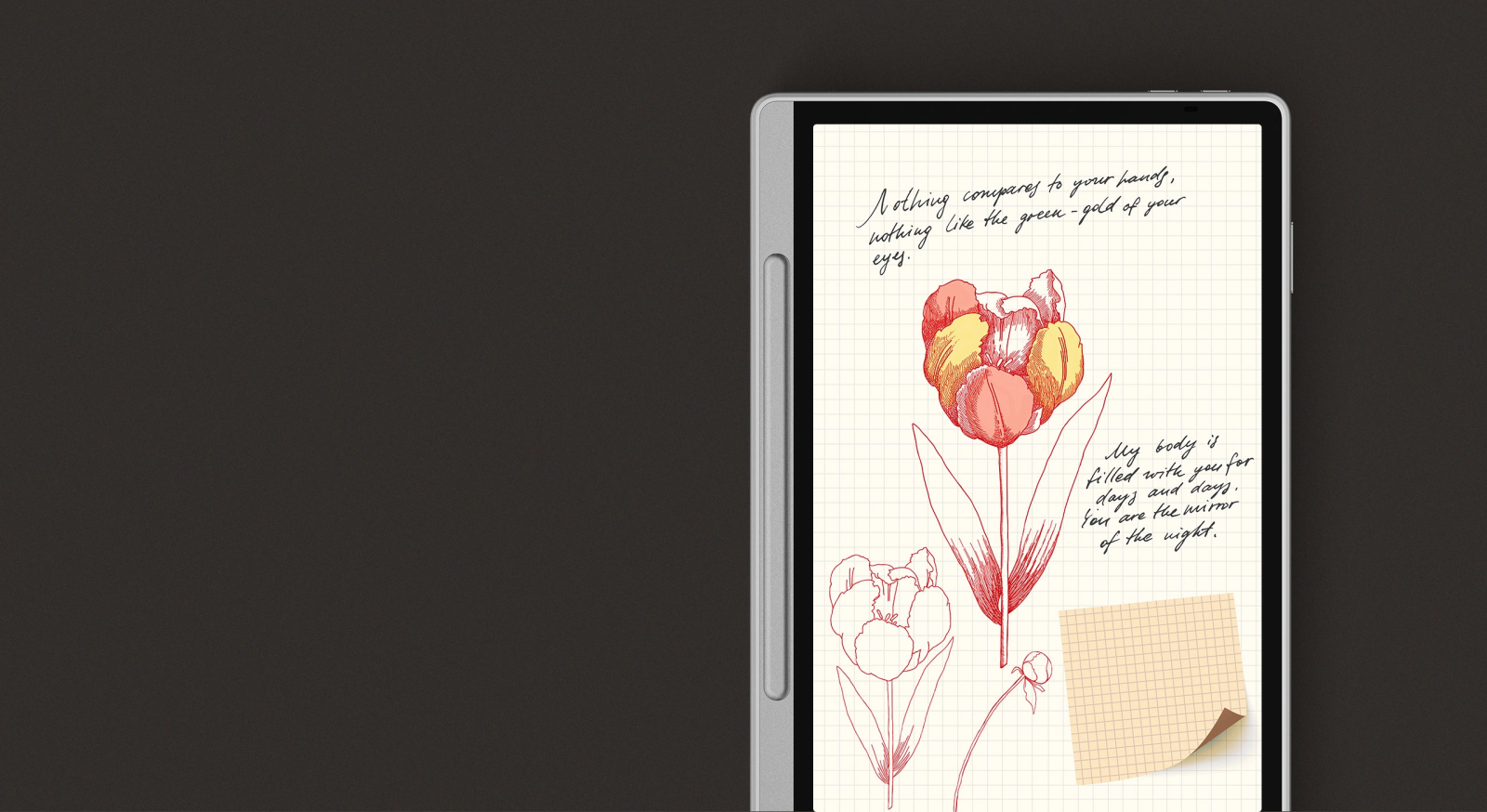 The AG nano-etched display significantly reduces reflection and glare. Every letter you read or write appears as if it is on paper. The visual and tactile comfort of the Magic Note Pad makes it an exceptional tool for your creative process.
