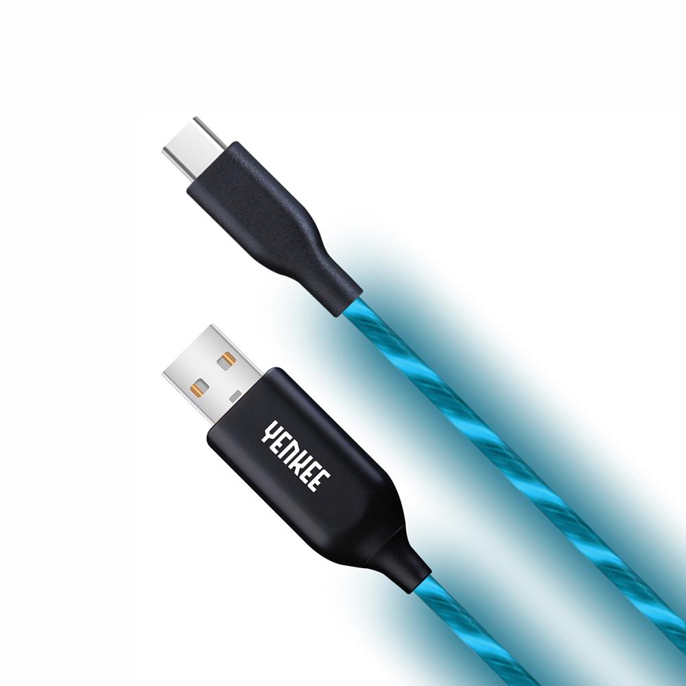 Yenkee Кабел 341 BE, USB Male към USB-C Male, LED, 2 m, син