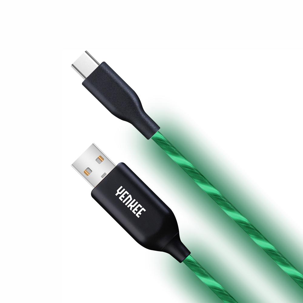 Yenkee Кабел 341 GN, USB Male към USB-C Male, LED, 2 m, зелен