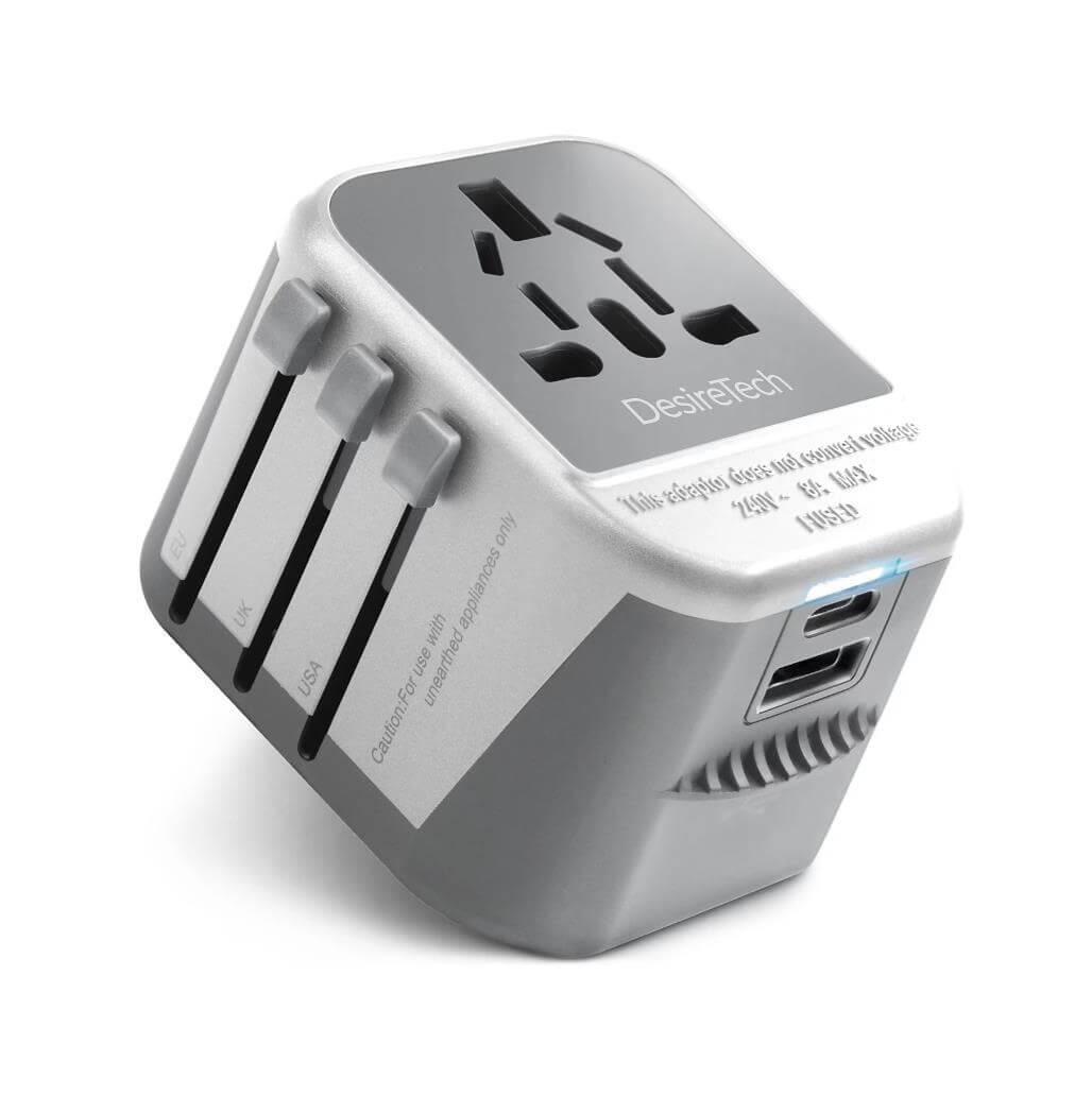 Захранване с USB-C и USB-A и преходници за цял свят - DesireTech Universal Travel Adapter 4 in 1 for 224 Countries, UK, Europe, USA, Asia, Australia