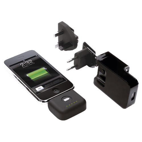В комплекта: USB захранване за ел. мрежа, преходници за Европа и ОК, външна батерия за iPhone/iPod