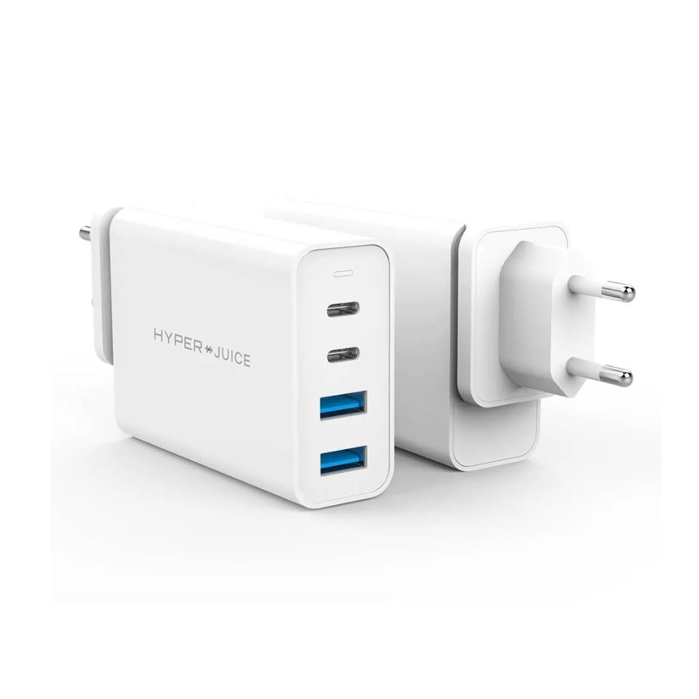 Захранване за ел. мрежа с общо четири USB изхода: 2 х USB-C с Power Delivery протокол за бързо зареждане и 2 х USB-А порт, снабден с технологията Gallium Nitride (GaN) technology на Hyper