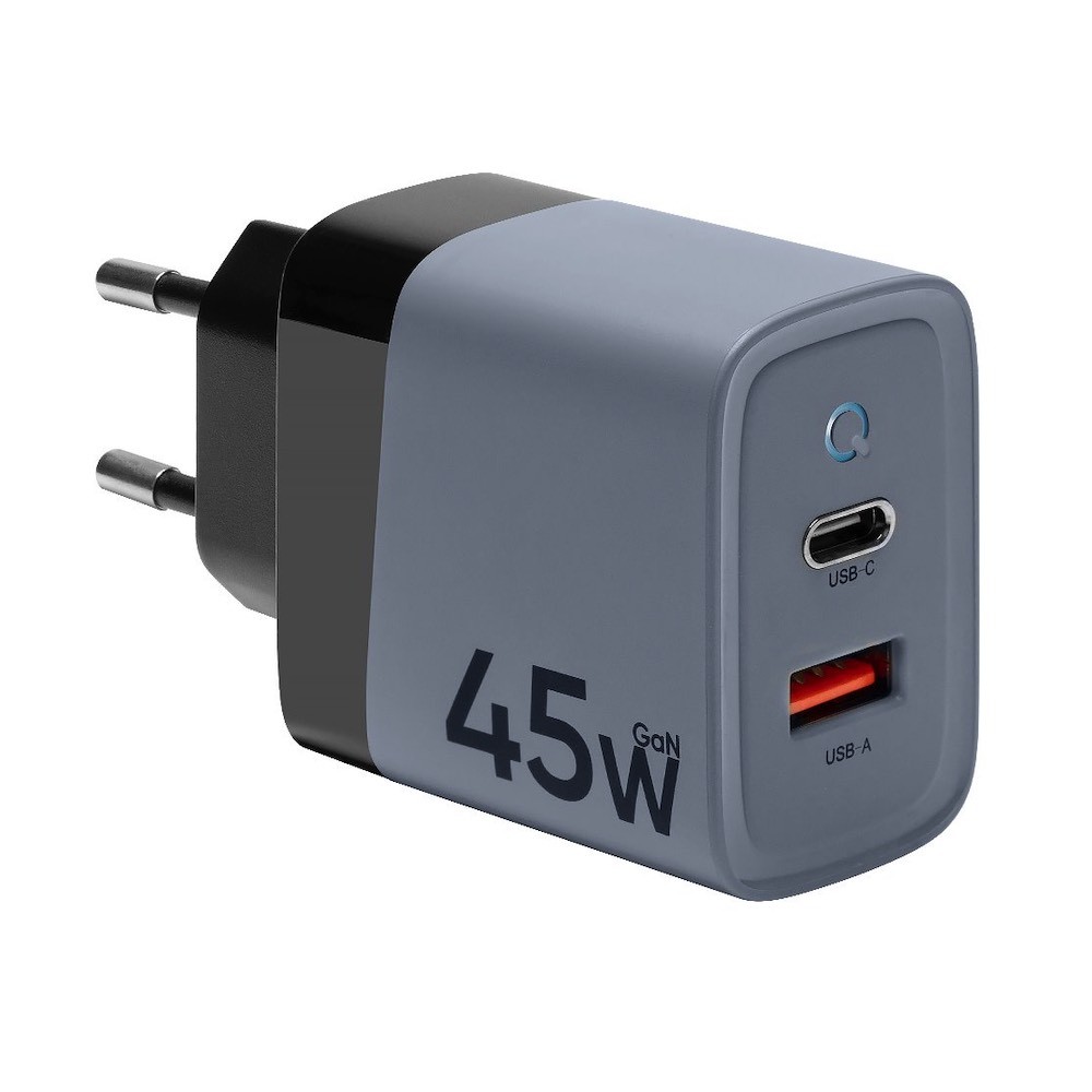 Захранване за ел. мрежа с USB-A и USB-C изходи с технология за бързо зареждане - Tactical GaN Microgrid Wall Charger 45W (сив)
