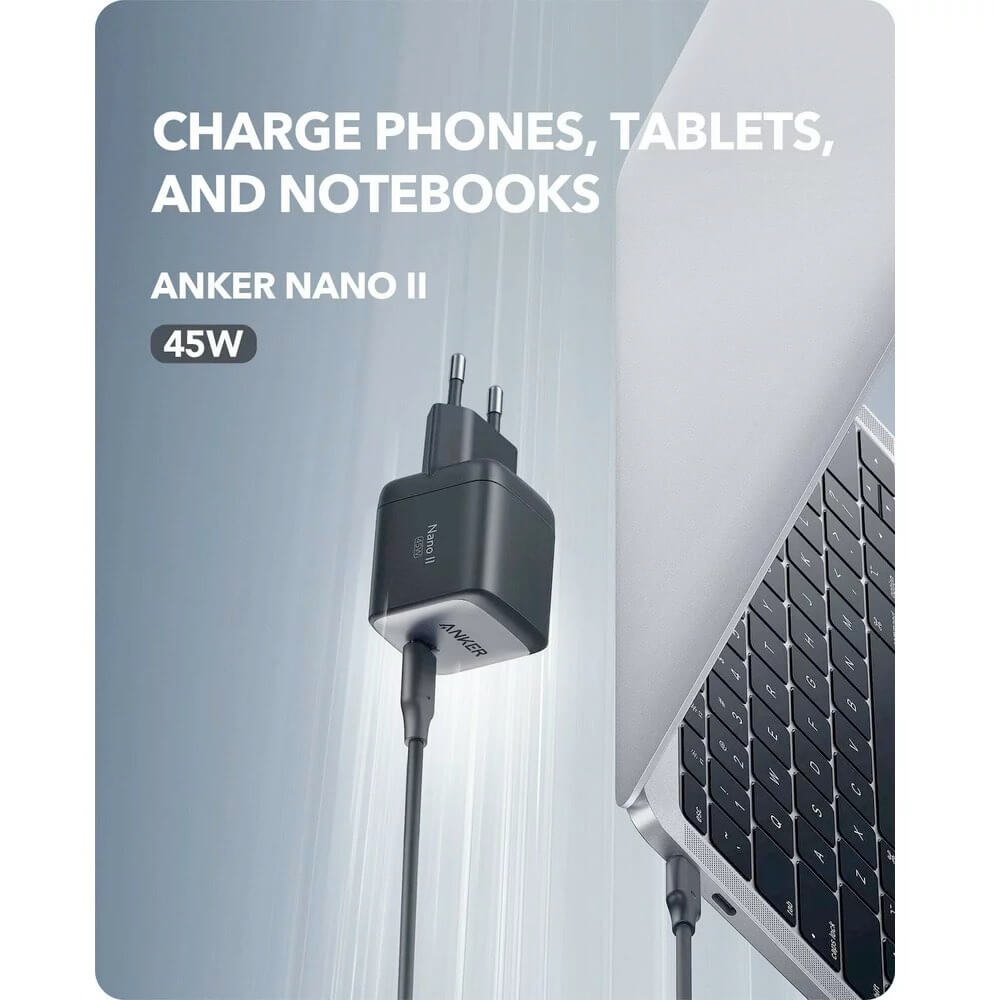 В комплекта: - 1 x Anker 713 PowerPort Nano II 45W Wall Charger - 1 x ръководство