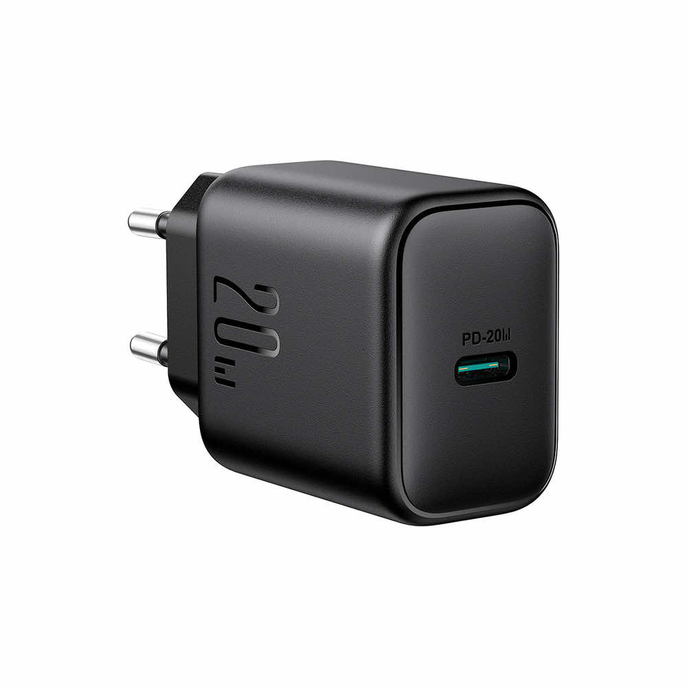 Захранване за ел. мрежа с USB-C изход с технология за бързо зареждане - Joyroom USB-C PD Fast Charger 20W (черен)