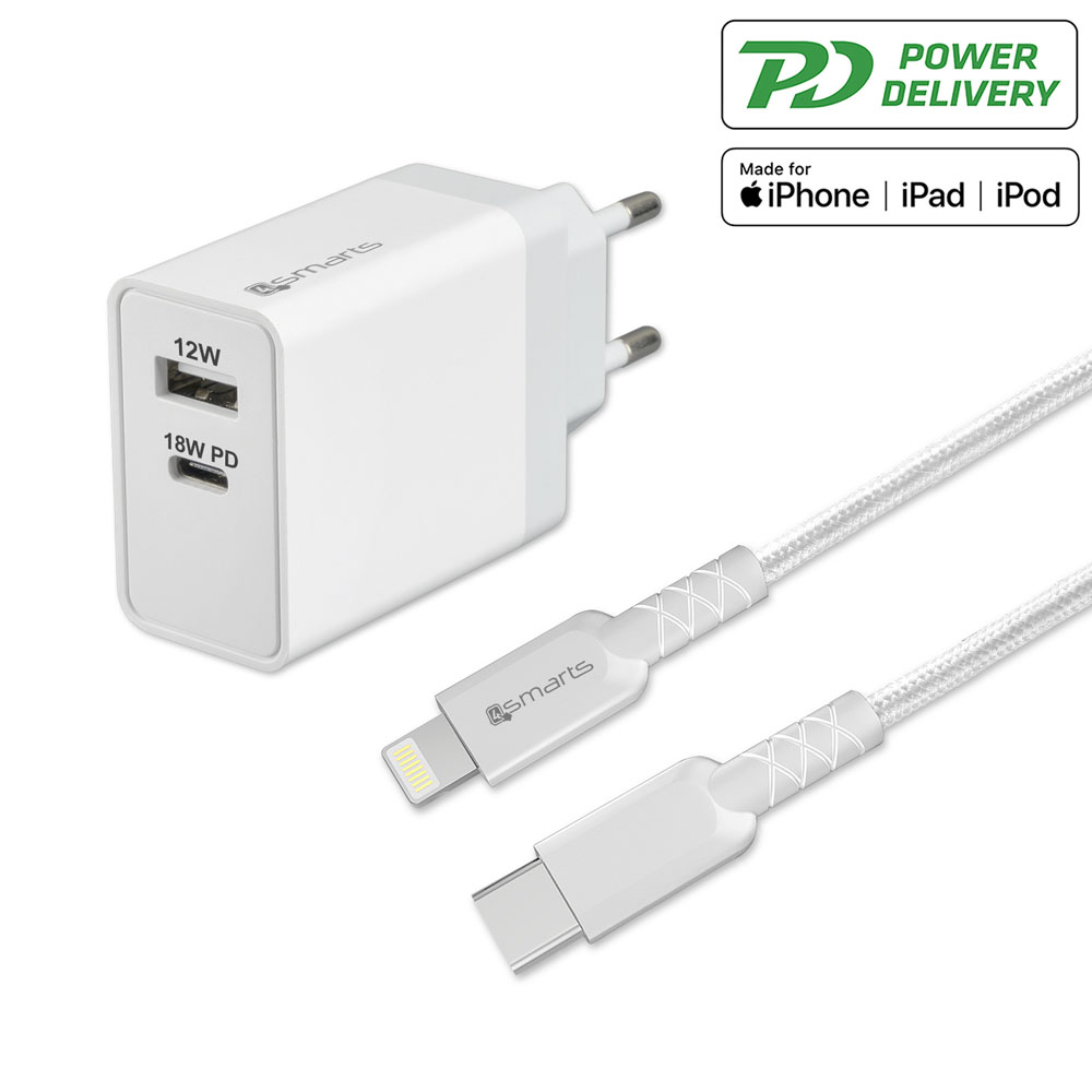 В комплекта: - 4Smarts Wall Charger Set VoltPlug 18W Plus 12W - USB-C кабел - Ръководство
