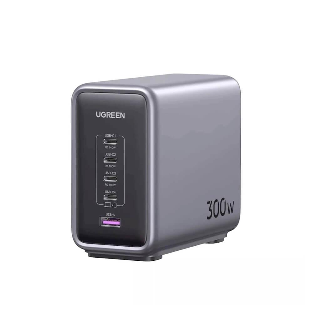Захранване за ел. мрежа за лаптопи, смартфони и таблети с 4xUSB-C и 1xUSB-A изходи с технология за бързо зареждане - Ugreen Nexode GaN Travel Fast Wall Charger 300W (тъмносив)
