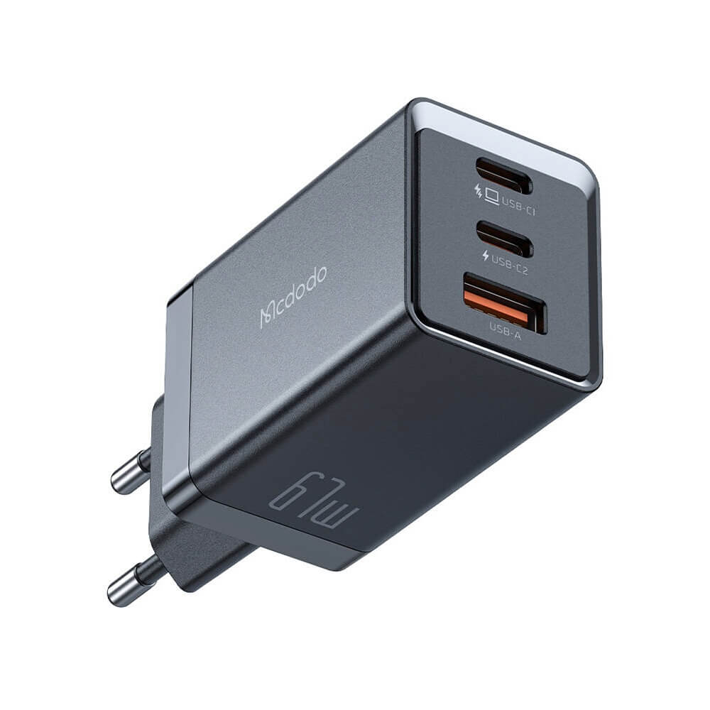 Захранване за ел. мрежа за лаптопи, смартфони и таблети с USB-A и 2xUSB-C изходи с технология за бързо зареждане - Mcdodo GaN Fast Wall Charger 67W (CH-1541) (черен)