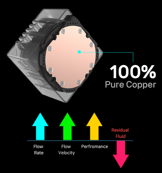 ![]() | High Thermal Conductivity 100% Pure Copper Base Crafted from 100% pure copper material, this base efficiently absorbs CPU heat and maximizes cooling performance through rapid heat dissipation, ensuring stable temperature maintenance. |