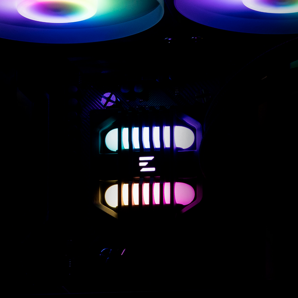 ![]() | A lighting module design that inspired by the Tube of a custom water-cooling setup Experience the stunning aesthetic of the ALPHA2 SE liquid cooler. The pump cover's LED light is designed to resemble the fluid channels of a custom water-cooling system. In ARGB mode, it delivers a dynamic lighting performance, creating the illusion of water flowing. With ARGB sync support for a variety of motherboards, you can easily customize and coordinate a spectrum of vibrant lighting effects. |