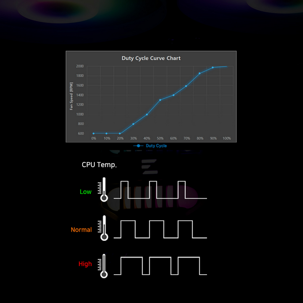 ![]() | Optimized PWM control PWM automatically adjusts fan speed based on the user’s environmental noise level to ensure optimal performance |