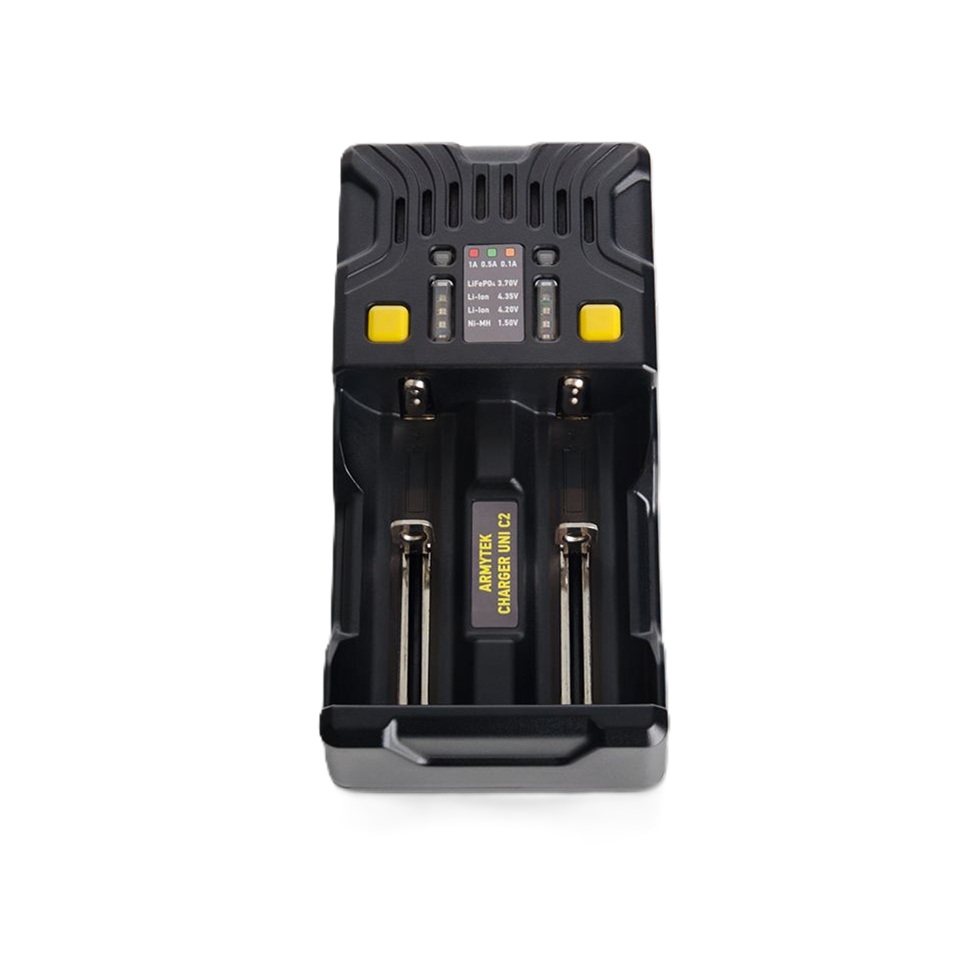 Универсалното зарядно устройство Armytek Uni C2 поддържа IMR, Li-Ion 4.2V, Li-Ion 4.35V, Ni-MH, Ni-Cd и Li-FePO4 батерии.