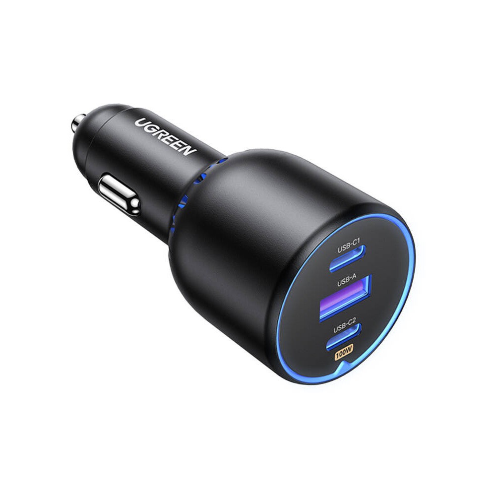 Зарядно за кола с 2xUSB-C и USB-A изходи с технология за бързо зареждане и USB-C към USB-C кабел - Ugreen CD293 Triple Fast Car Charger 130W (тъмносив)