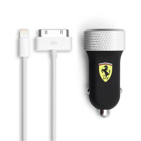 В комплекта: - Ferrari Car Charger с 2 USB изхода - Lightning кабел (за iPhone 5/5S/5C, iPad Air, 4, mini) - 30pin към dock connector кабел (за iPhone 4/4S, 3G/3Gs,2G, iPad 1/2/3)