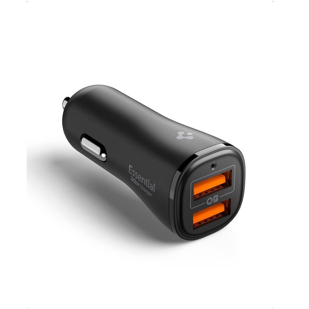 Зарядно за кола с технология за бързо зареждане с два USB-А изхода - Spigen PowerArc Essential Car Charger 30W (черен)
