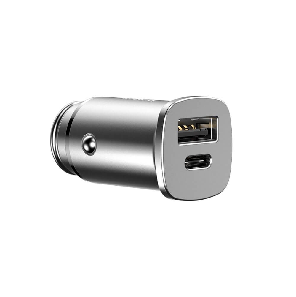 Зарядно за кола с един USB изход и един USB-C, като и двата притежават технология за бързо зареждане QualComm Quick Charge 3.0 (QC 3.0)
