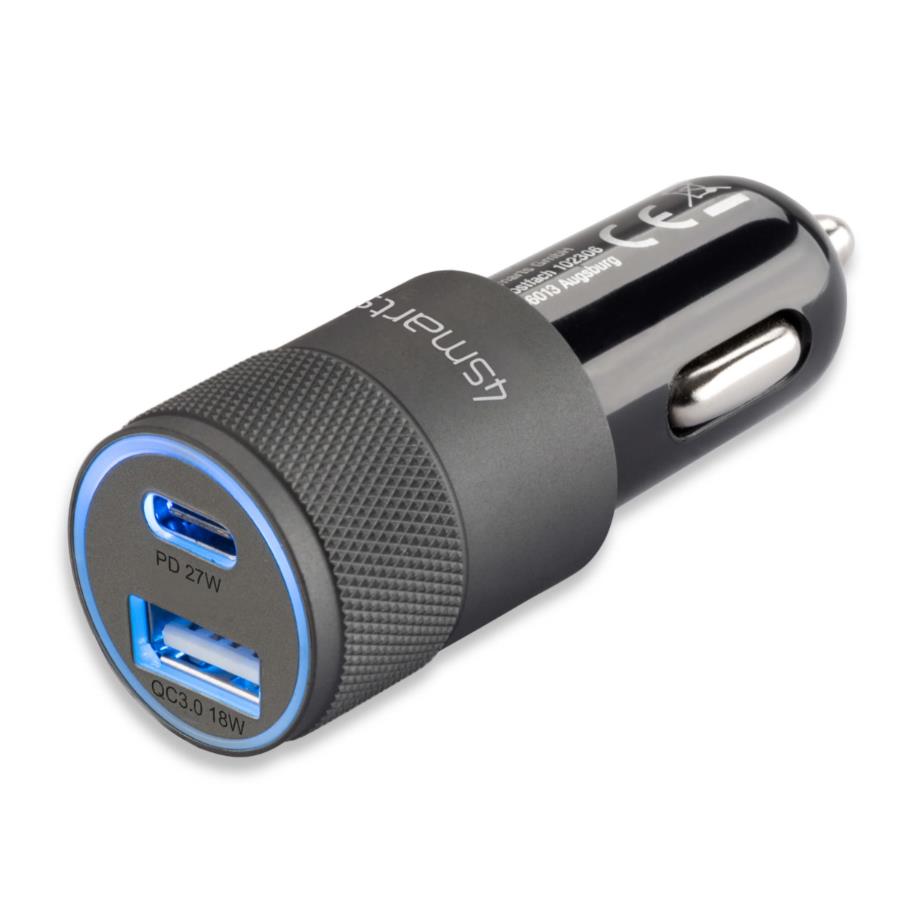Това двойно зарядно за кола позволява едновременно, ефективно зареждане за смартфони и таблети с Power Delivery и Quick Charge 3.0.