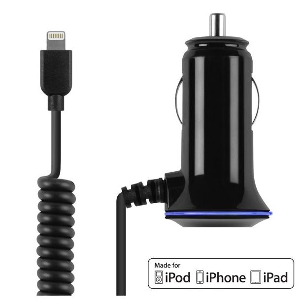 Захранване за кола с вграден кабел с Lightning конектор и отделен USB порт