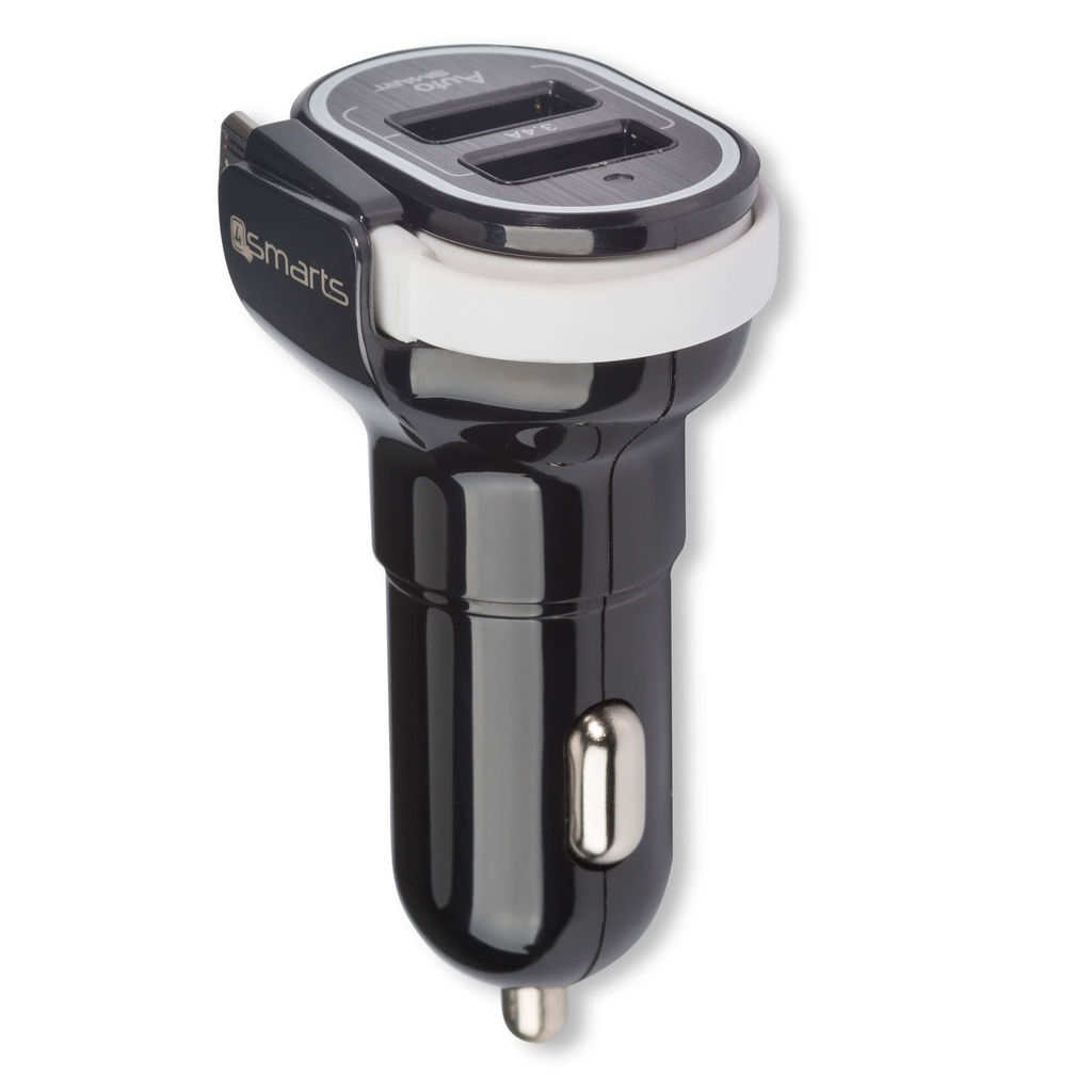 Качествено зарядно за кола с вграден MicroUSB кабел и два USB изхода за зареждане на три устройства едновременно