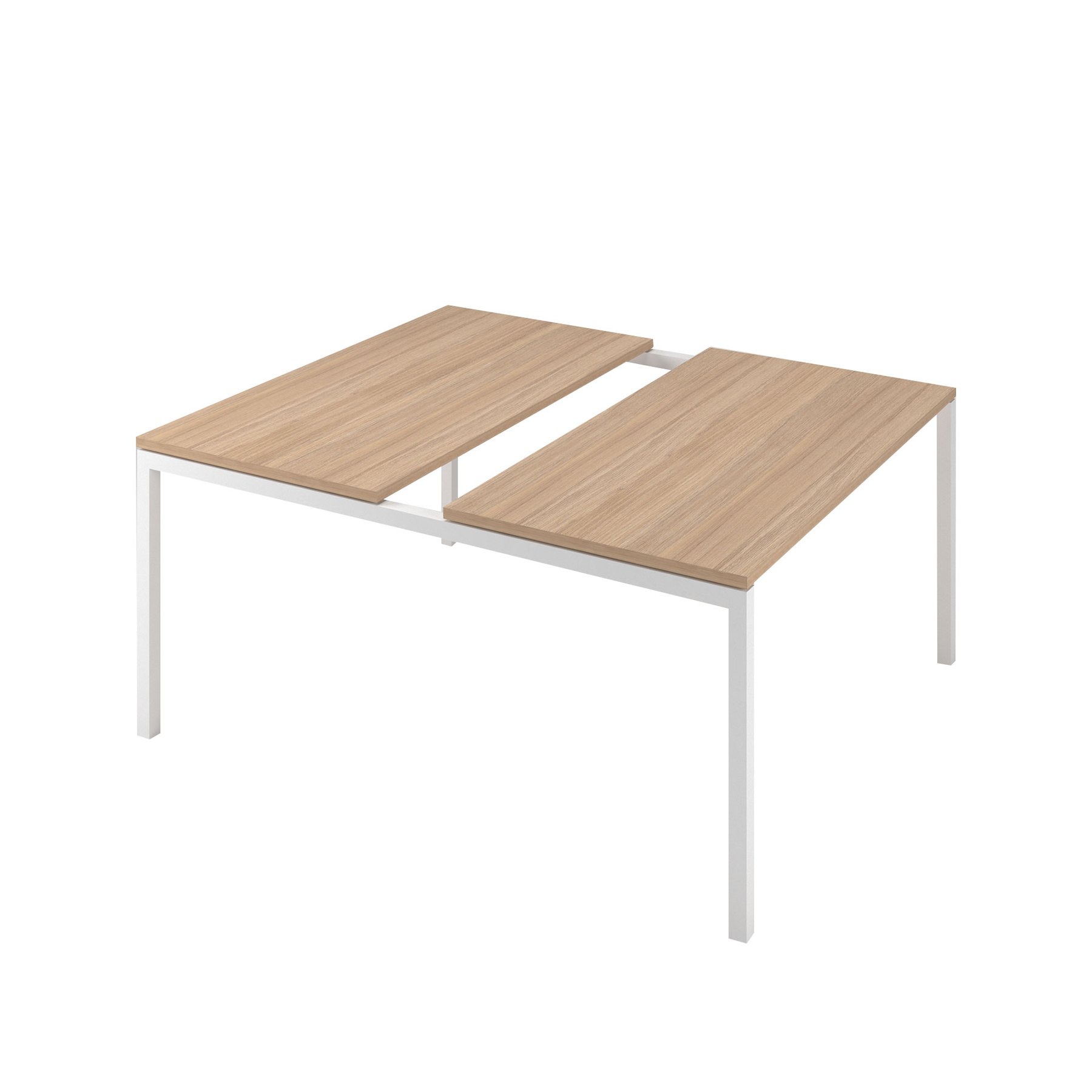 Заседателна маса Narbutas Nova, 1400 x 1640 x 740 mm, правоъгълен плот, ПДЧ 25 mm, меламин кехлибарен дъб, бял метал, крак тип U