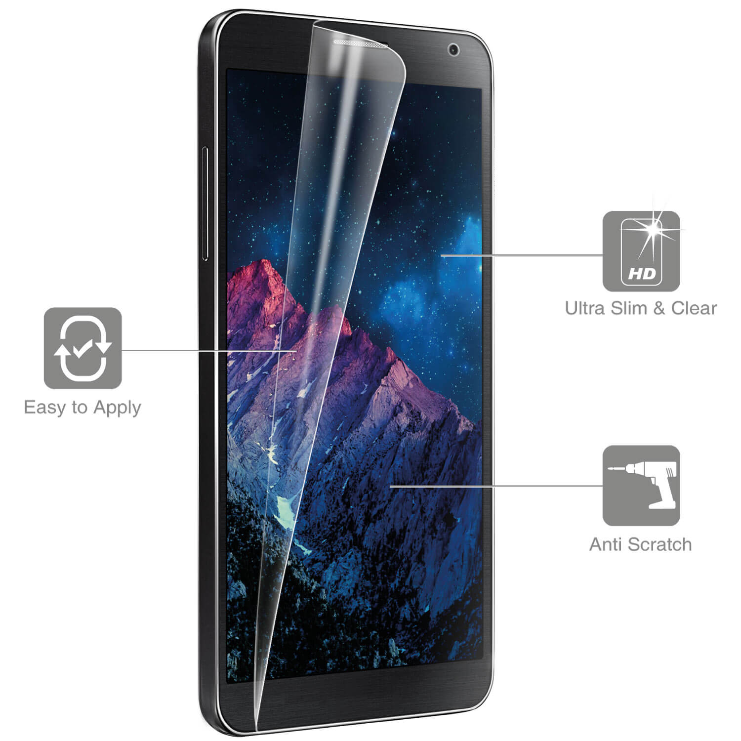 Характеристики: Anti-glare, Bubble free, Anti-dust и UV protection