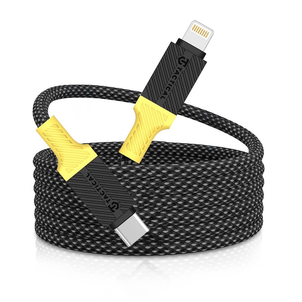 Здрав кабел с вграден магнитен органайзер и въжена оплетка за устройства с Lightning порт - Tactical MagRope Magnetic USB-C to Lightning Cable 27W (черен) (100 см)