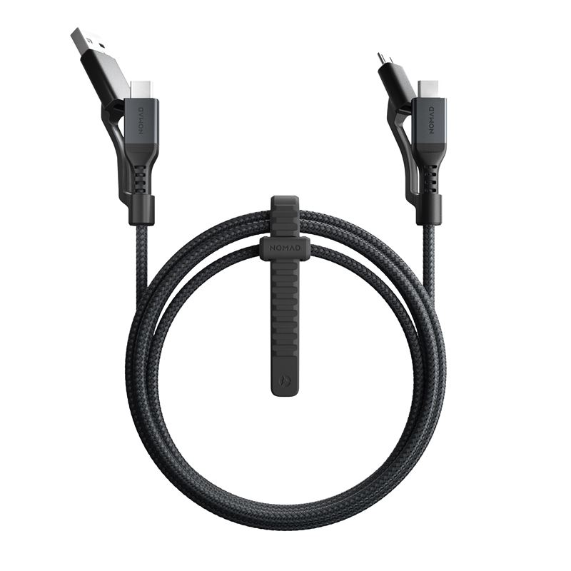Здрав кевларен кабел за устройства с USB-A, microUSB и USB-C порт (150 см) - Nomad Kevlar USB-C to Universal Cable v2 (черен)