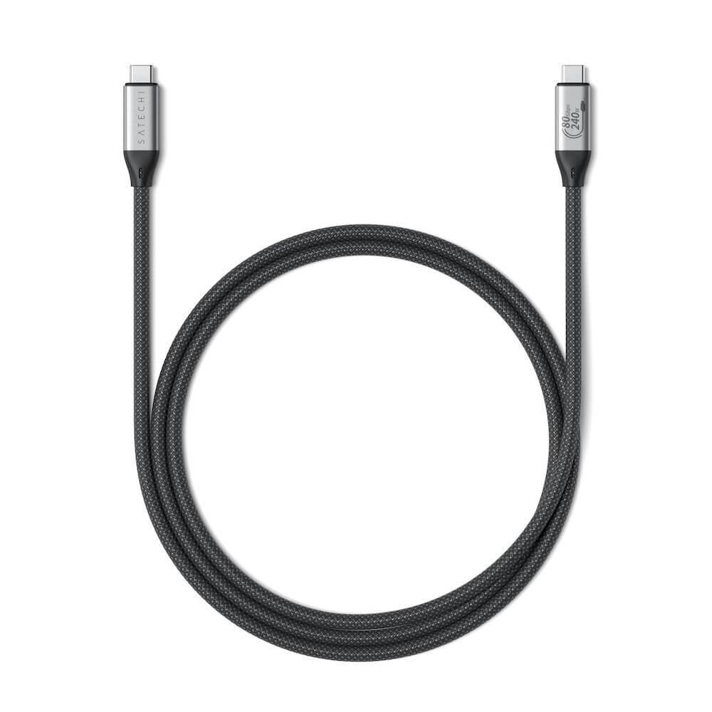 Здрав USB4 кабел с въжена оплетка за устройства с USB-C порт - Satechi USB4 V2 Pro USB-C to USB-C Cable, 8K, 240W, 80Gbps (черен) (120 см)
